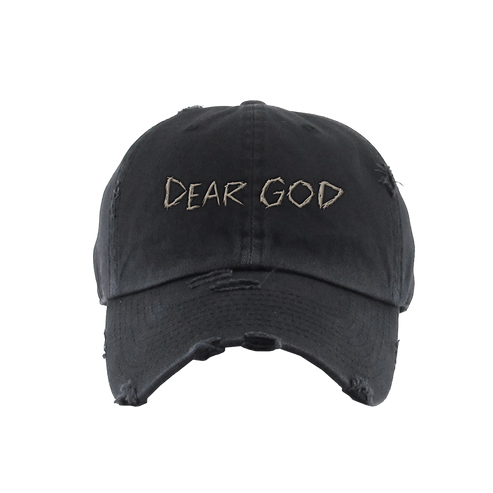 100% cotton twill dad hat with distressed details in washed black