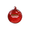 Red glass Christmas ornament with festive print and a string to hang on your tree. Ornament is not shatter-proof so please handle with care!